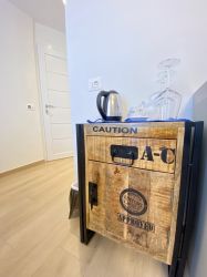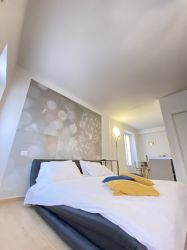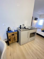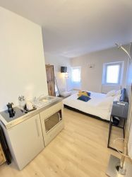 This one-room apartment is composed as follows: well-equipped kitchenette, king-size bed and modern bathroom with shower.